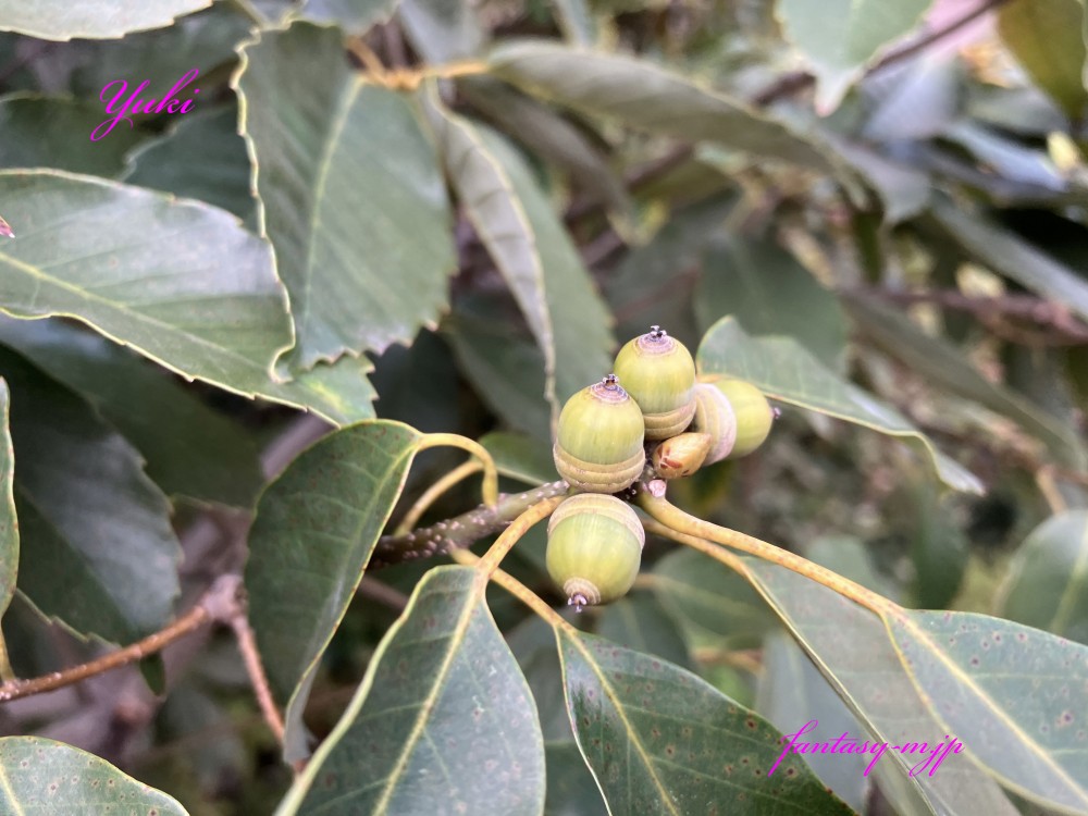 うちのマンションの植栽にどんぐりを発見!! 森に実っていればクマさんのお食事になるでしょうに・・・